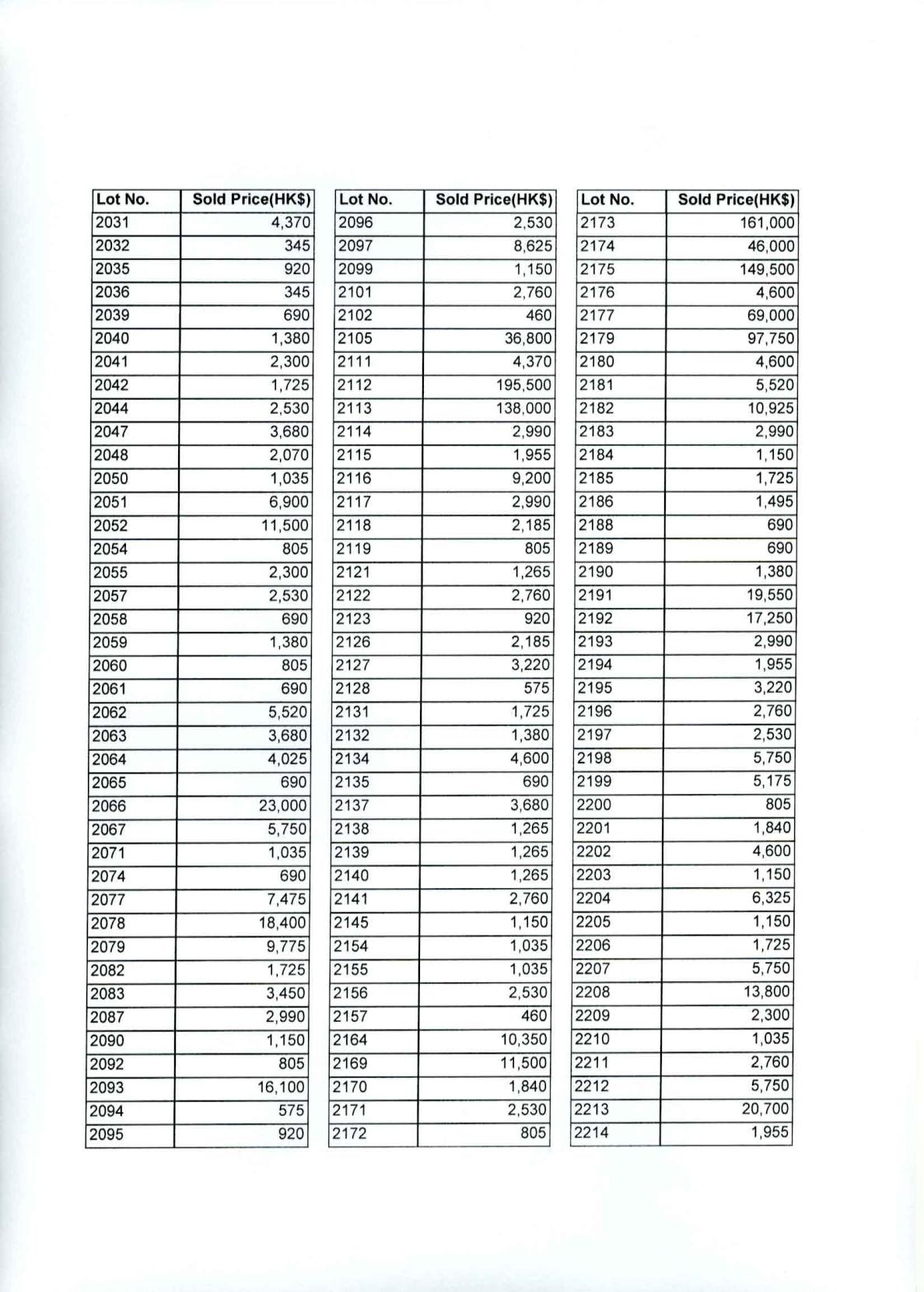 Page 14 - August 2011 Auction Results