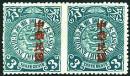 1912 Statistical Dept. opt. 'ROC' on 1c ochre in horiz. pair, opt. shifted downwards and left stamp missing bottom char. variety.