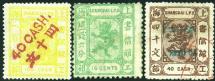 40 cash on 100 cash yellow, 20 cash on 40 cash brown, Coat of Arms sets, with duplication, approx. 80. Photo