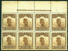 1925 Surch. 3c on 4c grey on 2nd Peking Print Junk block of 6 x 2, with few toned spots on back. Fine. Chan 281. Photo