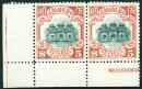 1923 2nd Peking print Junk, $5 horiz. pair with bottom corner margins, unmounted mint and one light toning spot on back of left