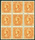 1932 Martyrs Peking print, 40c orange block of 9 with center stamp re-entry of char. 40c, fresh and dry gum. Chan 343a. Photo