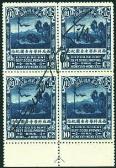 1932 Northwest Scientific Expedition 1c to 10c complete set block of 4 with bottom margin and each with Sven Hedin signature