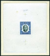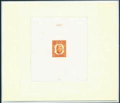 1941 SYS London print 1c orange die proof with die no. 81127, size 75 x 83mm on white paper board size 149 x 129mm, very fresh