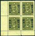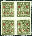 1942 Surcharge For Domestic Postage Paid on SYS Central Trust 16c olive block of 4, Shensi surcharged. No gum as issued, fine.