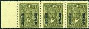 1942 Surcharge For Domestic Postage Paid on SYS Central Trust 16c olive brown horiz. strip of 3 with left side sheet margin,