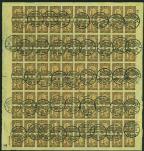 1942 SYS Paicheng print $100 brown thin paper imperf. complete sheet of 100 tied by bilingual 'SWATOW/20.11.45'. Chan 614.
