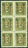 Szechwan surch. block of 6 with right middle stamp one bar omitted variety. No gum as issued. Chan 629, 633, 636, 656, 656c.