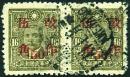 1942 Surcharged of 50 cents with 2 vertical bars on SYS Central Trust print, East Szechwan surch. Block of 8 with perf. 13 and perf.