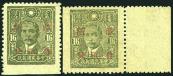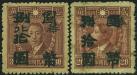1943 Surcharge of 50 Cents on SYS Central Trust print 16c, West Szechwan surch x 2. One stamp with imperf. at left and one stamp