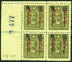 1943 Surcharge of 50 Cents on SYS Central Trust print 16c block of 4, Hunan surch. with left side margin imperf. variety. Mint.