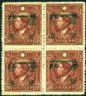 invert. Block of 4, right lower stamp 'Yuan' omitted and left lower stamp opt. 'Bi' instead of 'Ten', $20 on 40c opt. invert. no gum as