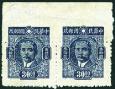 1945 SYS Chungking Central print $30 deep blue in pair with imperf. at top variety. Unused. Chan 868var. Photo