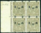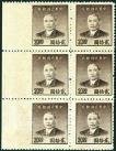 1949 SYS Gold Yuan Shanghai Central print $20 brown purple block of 4 with left side margin imperf. No gum as issued. Chan
