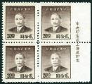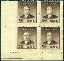 1949 Gold Yuan SYS Shanghai Central print $20 brown purple block of 4 perf. 12 1/2 with imprint, unused. Chan G138a. Photo