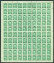 1944 Parcel Post stamps Chungking Central Print, $500 green complete sheet of 100, no gum as issued. Fresh. Chan P1. Photo
