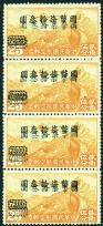 1946 National Currency surcharged on HK print Air Mail, no wmk. $73 on 25c in vertical strip of 4 with surcharge double variety,