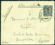 1912 (19 Dec.) A cover via Siberia to Lyon, France. Bearing opt 'ROC' on Coiling Dragon 10c blue tied by bilingual 'SHANGHAI'