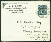 13, on reverse with similar cds, Hankow & Moukden unclear bilingualbisected cds's, both dated 18 Jun, fine. Photo