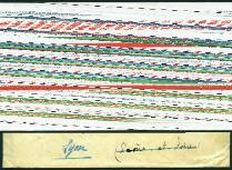 postage due 1c brown in pair, tied by France cds and h/s 'T' postage due mark in triangle and 'Trouve a la boite'. On reverse with
