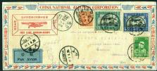 1933 (7 June) A First Flight cover from Chungking to Chengtu bearing Premier Tan 5c, Martyrs 8c, 2nd Air Mail 15c and 30c tied