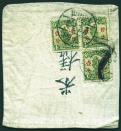 3, tied by bilingual 'WUHU' sent to Shanghai, a very interesting postal item used by fabric material. Scarce. Photo