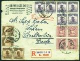 1935 (25 Apr.) A cover reg. to Liechtenstein via Siberia, bearing multiple stamps Junk 1 1/2c in pair, 6c x 4, 7c block of 4,