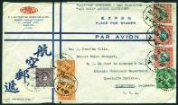 1940 (14 Feb.) An airmail cover to USA, bearing SYS 25c blue in pair, $1, $2 and $5 each with handstamped with Anti-Bandit