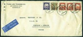 Portugal by Pan American Airways. Bearing SYS Chung Hwa print $1, Dah Tung print $10 and opt. char. 'Hopei' on Martyrs HK