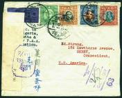 1941 A censor cover from Chungking to Canton, USA. On front bearing Thrift Movement 21c brown and 50c blue tied by faint