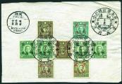 1943 A cover bearing Surcharged of 50 cents with 2 vertical bars, East Szechwan surch. to Chungking local, tied by bilingual