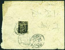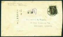 1942 (17 Dec.) A reg. cover form Hunan to Chungking, bearing SYS $1 on front tied by bilingual 'SIANGSIANG' cds, on reverse