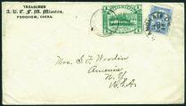 1896 (11 Dec.) Cover from Foochow to USA, franked on front with Foochow Local Post First issue, 1c green, tied by POSTAL