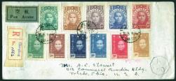 1945 (10 May) An air mail cover form Chungking reg. to USA, bearing 50th Anniv. of Kuomintang comp. set and 20th Death Anniv.