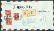 1946 (6 June) An air mail cover reg. to USA bearing SYS $20 x 3 on front tied by 'Chungsha' cds on reverse with Saving stamps