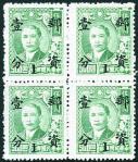 1949 Silver Yuan Machine surch. on SYS stamps short set of 9 in block of 4, less 2 1/2c on $50,000 ultramarine and 10c on $6,000