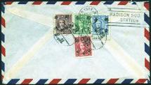 With 'NEWYORK/23.7.49' arrival machine chop. Nice mixed colour franking. Fine. Photo