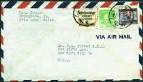 1949 (July) A Silver Yuan cover form Fukien to New York, USA. On reverse bearing machine surch. 1c on $500 green, 4c on $100