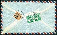 1949 (24 Aug.) A Silver Yuan air mail cover from Fukien to New York, USA. On reverse bearing Unit stamp HK print Domestic