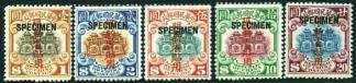 1924 Opt. 'Limited For Use In Sinkiang Province' on high values Hall of Classics $1 to $20 short set of 5 each with opt. 'Specimen'