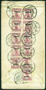 1921 (15 Oct.) A red band cover to Shansi, on reverse bearing opt. 'Limited For Use In Sinkiang Province' on Junk 1c and 8c, tied by