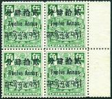1911 Tibet Coiling Dragon 12a on 50c green block of 4 with right side margin sheet, unmounted mint and fresh. Chan T9. Photo