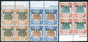 1926 Junk 2nd Peking print 'Limited For Use In Yunnan Province' 1/2c to $5 complete set in blocks of 4, some with imprint