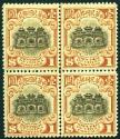 1923 2nd Peking print Classic of Hall $1 block of 4, dry gum and toned. Chan 268. Photo