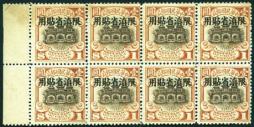 1926 Opt. 'For Use In Yunnan Province' on 2nd Peking print Classic of Hall $1 block of 8 with left side sheet margin, toned, gum