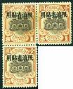 1926 Opt. 'For Use In Yunnan Province' on 2nd Peking print Classic of Hall $1 in irregular block of 3, toned and gum disturbed.