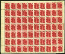 1937 Abolition of Extrality Rights 2f to 20f, complete set of 6 in complete sheets of 50, each sheet with transparent paper stuck on