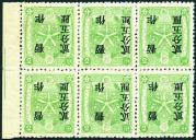 1937 Surcharged on China Mail, narrow space, 2 1/2f on 2f yellow green block of 6 with opt. inverted variety, unmounted mint and