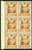 1937 Surcharged on China Mail, wide space between 2 vertical rows-6.50mm, 13f on 12f brown red block of 6 with left sheet