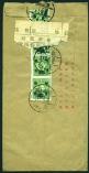 1940's A cover reg. to Tientsin bearing half value surch. on SYS 4c on 8c green and opt 'North China' on SYS 16c olive brown block